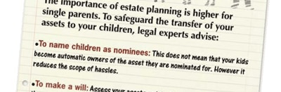 A rough-and-ready method of figuring out how much insurance a single parent needs is to add up the family’s expenses for another 30 years, value of all loans and a buffer equivalent to equity investments. Apart from life cover, it’s also important that a single parent takes health and accident insurance, as hospital bills could prove crippling. If you are divorced and some of the child-related expenses are met by your ex-spouse, it is a good idea to ask him/her to take adequate life insurance.