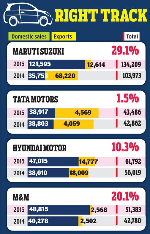 Honda Cars India (HCIL), Mahindra & Mahindra (M&M) and Tata Motors also posted an increase in sales during the month.