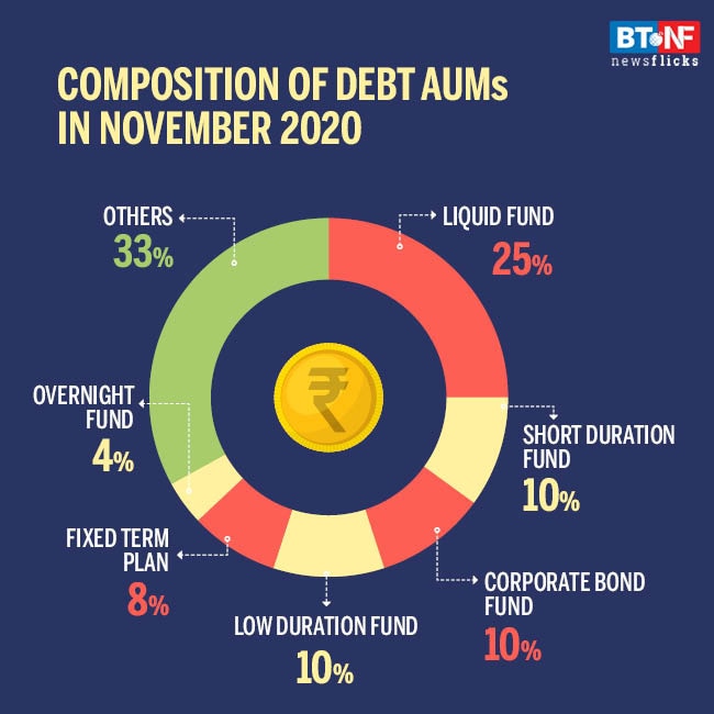 Debt schemes accounted for the largest share of AUMs at 50.4 per cent. Out of Rs 15.1 lakh crore debt funds asset, liquid funds continue to have largest share at 25 per cent, followed by short-duration fund.