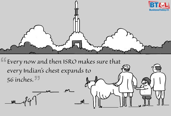 Every now and then ISRO makes sure that every Indian's chest expands to 56 inches!!! Cartoon by @chandancartoons