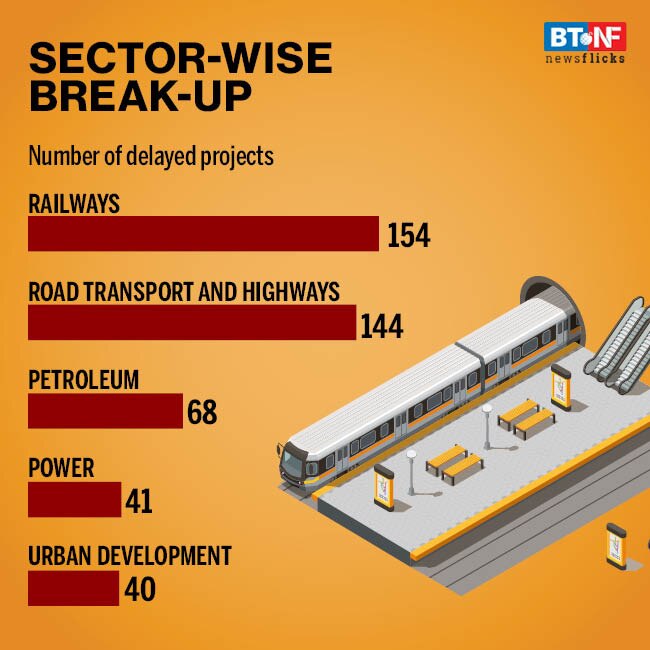 Of the 539 delayed projects, a majority, 154, belonged to the Railways, followed by Road Transport and Highways and Petroleum with 144 and 68 projects each.