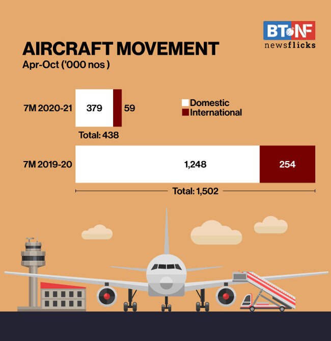 Domestic aircraft movement was at a fifteen-year low in first seven months of FY21 while number of international flights operated was lowest in nineteen years. On a yearly basis, the domestic flights have been 70% lower while international flights have reduced by 77% during April-October'20.