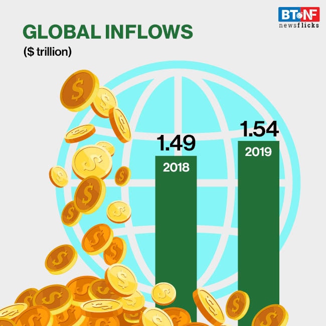 India ranked 12th with foreign inflows at $42 billion in 2018 which increased by $9 billion in 2019.