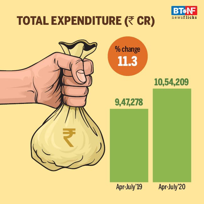 Total expenditure has seen 11.3 per cent increase during April-July 2020 (year-on-year) owing to a broad-base increase in both revenue and capital expenditure.