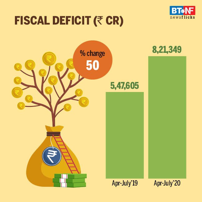 Fiscal deficit during April-July 2020 was at Rs 8.2 lakh crore. The fiscal deficit of the Central government has surpassed the budgeted number for the full year by 3 per cent.