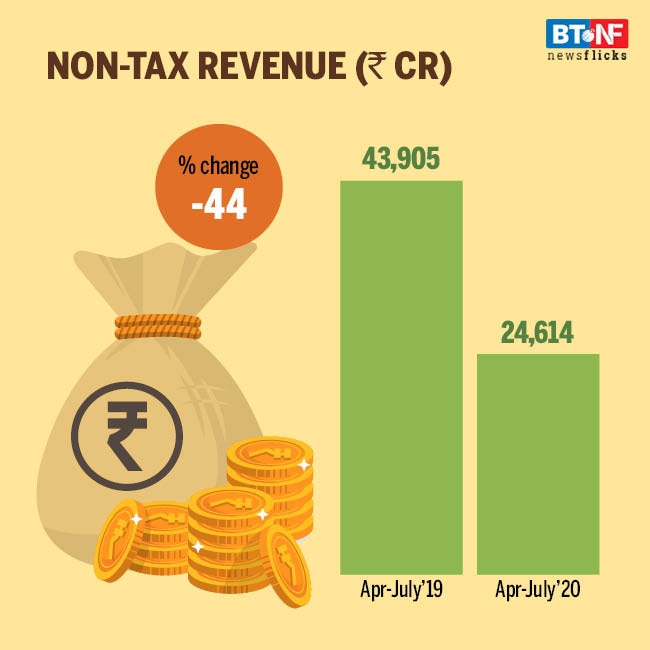 Non-tax revenue comprises interest receipts and receipts from dividends and profit. It was only Rs 24,614 crore during April-July 2020.