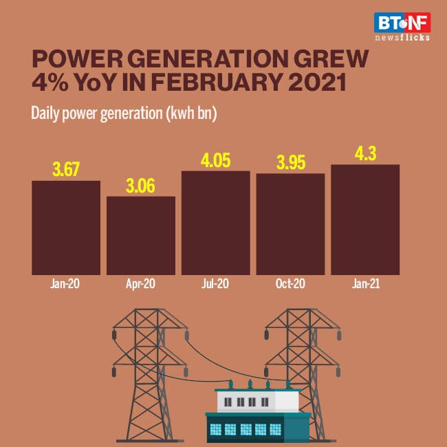 Daily power generation was up 4% YoY in February 2021 and 4.2% in January 2021.