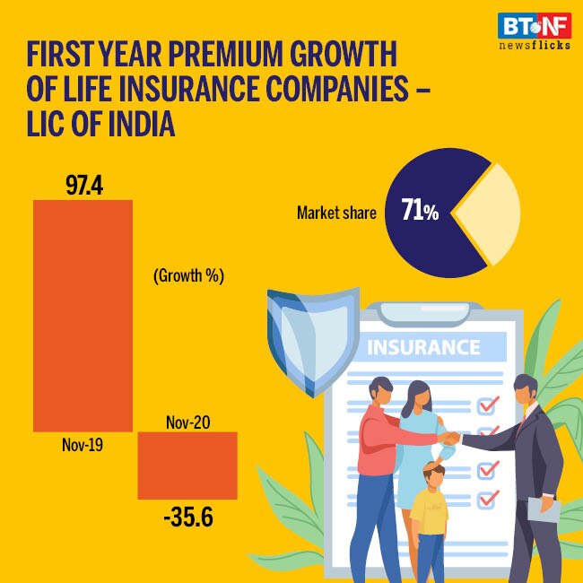LIC's first year premium decreased by 35.6% in November 2020 compared to growth of 97.4% in November 2019. However, LIC continues to maintain its dominant share in the first year premium.
