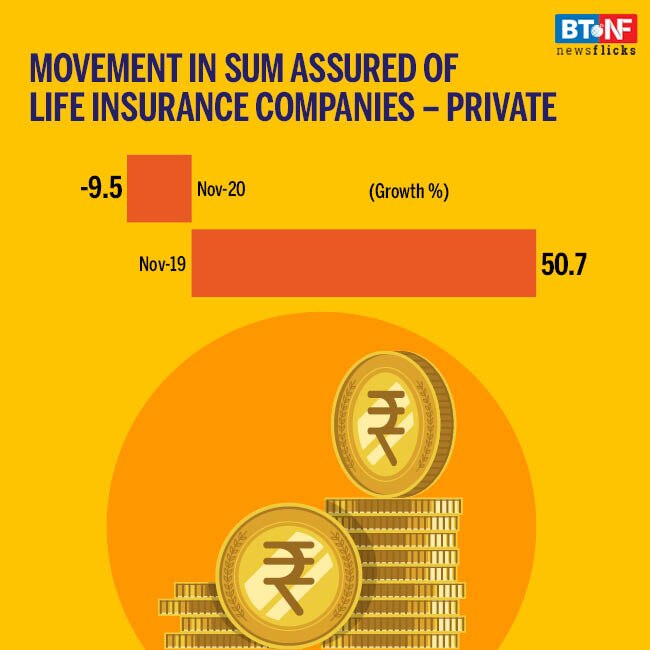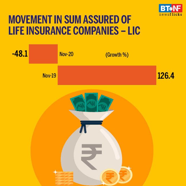 The overall sum assured declined by 9.2% from Rs 30.1 lakh crore in Apr-November FY20 to Rs. 27.4 lakh crore in Apr-Nov FY21. Total sum assured of LIC declined by 48% in Nov 2020 on YoY basis.