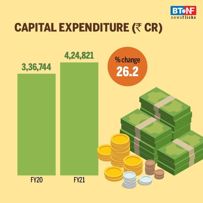 Both revenue and capital expenditure have increased in double digits of 31.4 per cent and 26.2 per cent, respectively. Revenue expenditure is 2.5 per cent higher than the revised estimate for FY21.