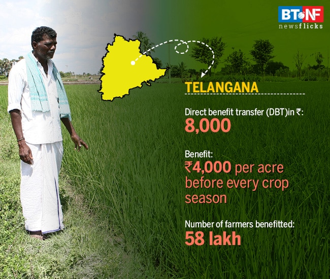 Telangana government has launched a first-of-its kind investment support scheme for all farmers who will get Rs 8,000 per acre, every year, as crop investment support. About 58 lakh farmers are expected to benefit from the initiative, called the Rythu Bandhu scheme. The yearly cost of the scheme is estimated to be Rs 12,000 crore every year.