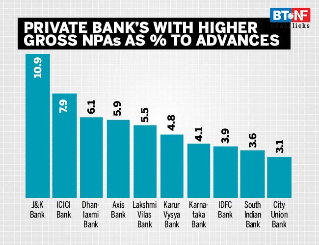 In the private banks category, J&K Bank was the worst performer with 10.9% of its advances turning into NPAs.