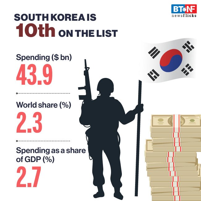 In South Korea, the upward trend in military spending since 2000 continued. In 2019 its military spending reached $43.9 billion, an increase of 7.5 per cent in 2018 and of 36 per cent in 2010.