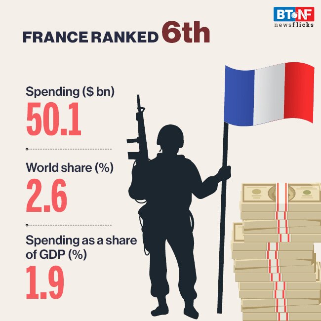 France's military spending in 2019 was the sixth highest in the world and the highest among states in Western Europe. France's military spending rose by 1.6 per cent in 2019 to reach $50.1 billion. Over the decade 2010-19, its military spending increased by 3.5 per cent.