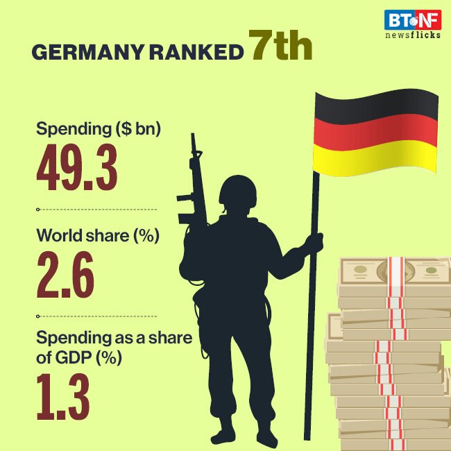 Germany had the highest annual increase (10 per cent) in military spending among the top 15 spenders in 2019 and moved up two places in the rankings, from ninth to seventh.
