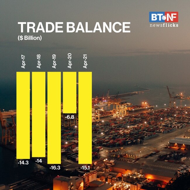 Merchandise imports increased to $45.7 billion recording a growth of 167% over April 2020. They were 5% lower compared to $48.38 billion in the previous month.