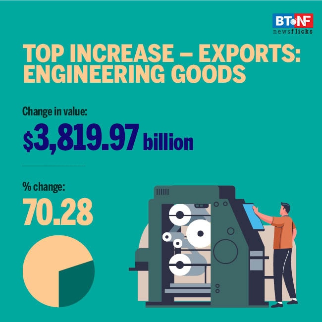Goods segment that recorded the highest growth in exports during March 2021 was engineering goods, increasing 70.28 per cent Y-o-Y.