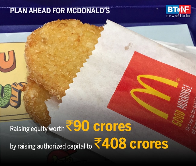 McDonald's is actively searching for a developmental licensee partner in North and East India region. To write off investment of Rs 198 crore in CPRL and a tax liability of Rs 105 crore, McDonald's India proposed to infuse Rs 90 crore worth of fresh equity shares by raising its authorized capital limit to Rs 408 crore to finance these one-time losses.