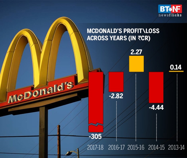 McDonald's India posted a loss of Rs 305 crore in FY 17-18. As compared to a loss of Rs 2.82 crore in FY 16-17.