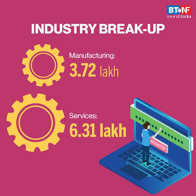As per the analysis of the registrations till October-end, 3.72 lakh enterprises have been registered under manufacturing category whereas 6.31 lakh enterprises were under service sector.