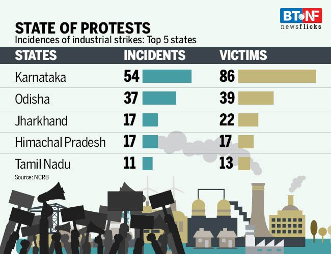 A scuffle broke out between the police and protestors over Sterlite Industries in Tamil Nadu killing eleven people. We look at some of the industrial strikes and lockouts over the years