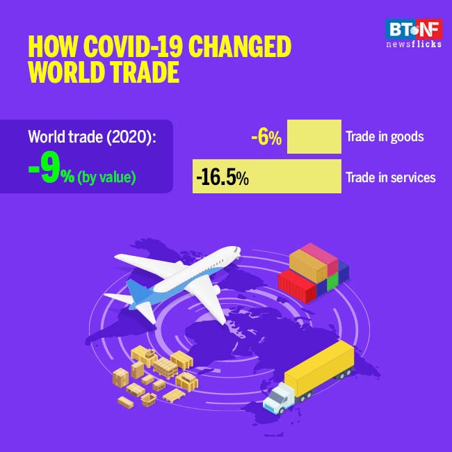 The economic and social disruptions brought by coronavirus has greatly affected world trade in 2020. Overall, world trade recorded a drop in value of about 9 per cent, with trade in goods declining by about 6 per cent and trade in services down by about 16.5 per cent