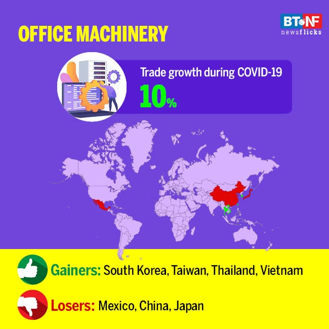 COVID-19 had adverse effects on the working environment of companies. Employees had to be seated at an increased distance from each other to reduce the spread of the pandemic while many were given the option to work from home till situation normalised. This led to an increase in demand for office equipment. Countries such as S.Korea, Taiwan, Thailand and Vietnam gained market share while Mexico, China, Japan saw an erosion.