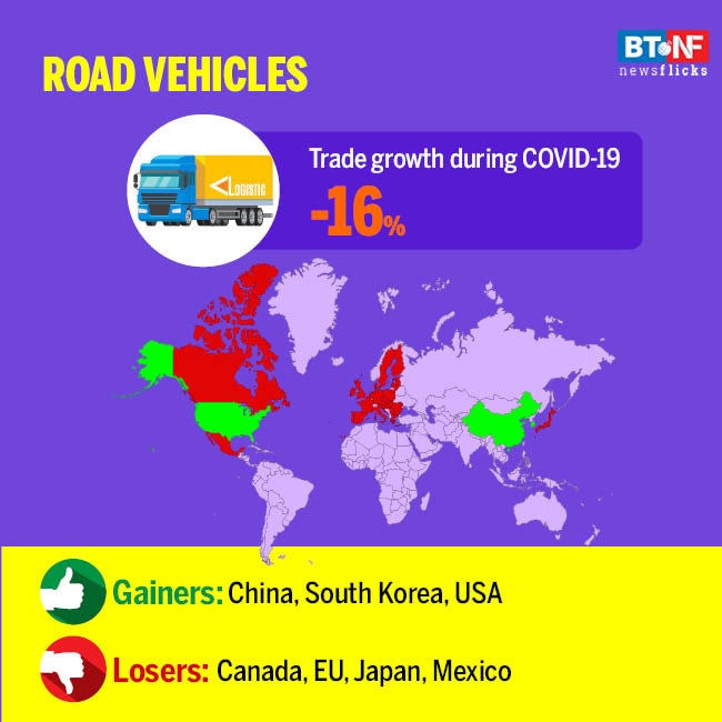 COVID-19 led lockdowns brought the world to a halt resulting in weaker demand for road vehicles. China, S. Korea and the US gained market share while Canada, EU, Japan and Mexico lost their competitive edge.