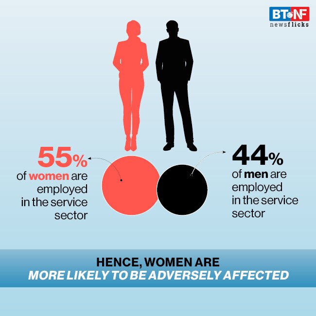 The service sector is being hit hard by the restrictions imposed to manage the spread of coronavirus. Moreover, female-dominated service sectors such as food, hospitality and tourism are among those expected to feel the harshest economic effects of the measures to contain the spread of the pandemic.