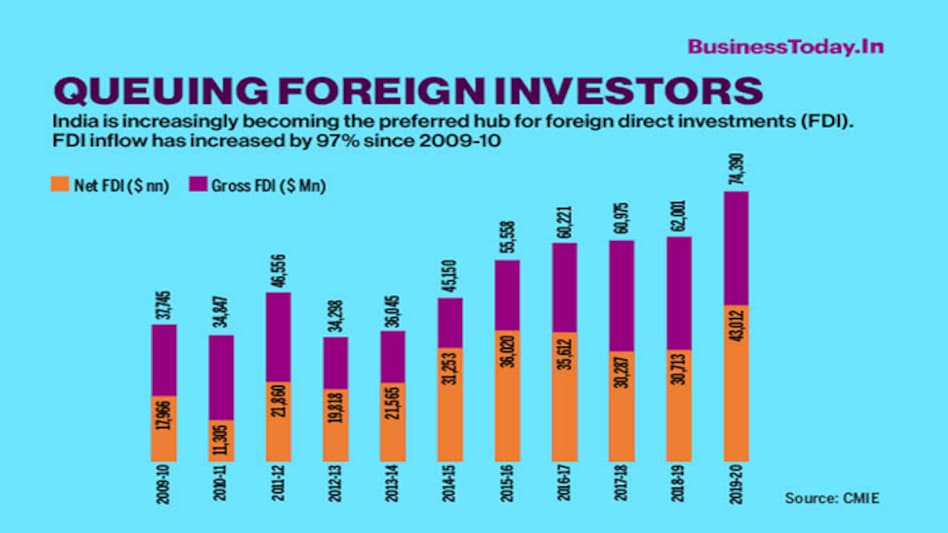 India is increasingly becoming the preferred hub for foreign direct investments (FDI). FDI inflow has increased by 97% since 2009-10