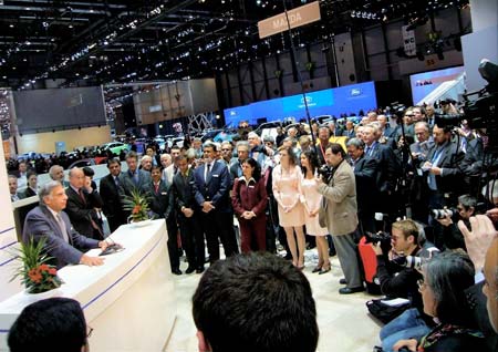 Tata Group chairman Ratan Tata addresses media at 79th Geneva Motor Show. Photo: PTI