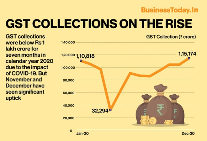 From a low of just Rs 32, 294 crore in April to an all-time high of Rs 1.15 lakh crore in December 2020, GST collections have made a recovery