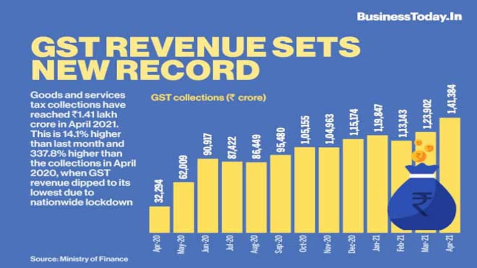 Goods and services tax collections have reached Rs 1.41 lakh crore in April 2021