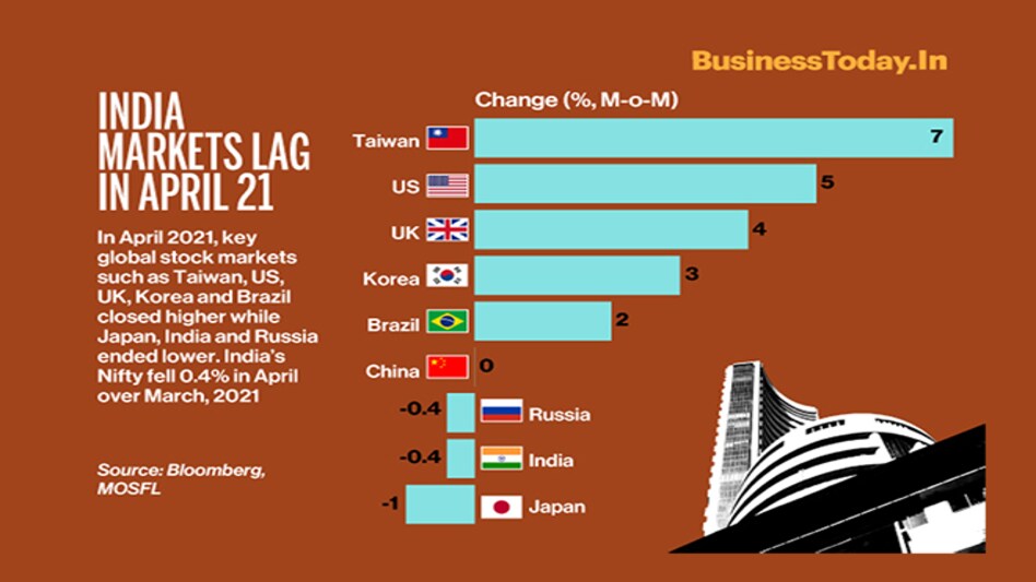 In April 2021, key global stock markets such as Taiwan, US, UK, Korea and Brazil closed higher while Japan, India and Russia ended lower. India's Nifty fell 0.4% in April over March, 2021.