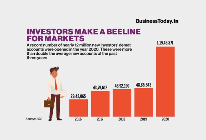 A record number of nearly 12 million new investors' demat accounts were opened in the year 2020. These were more than double the average new accounts of the past three year.