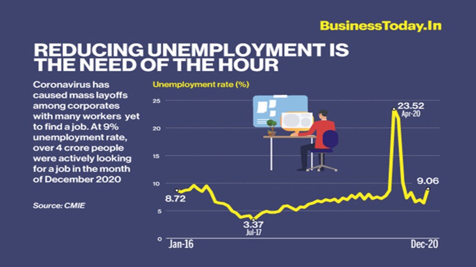 Coronavirus has caused mass layoffs among corporates with many workers yet to find a job. At 9% unemployment rate, over 4 crore people were actively looking for a job in the month of December 2020