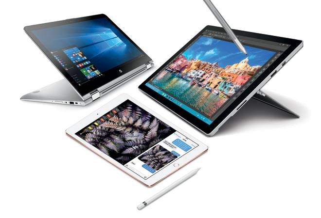 PC manufacturers are aggressively expanding their hybrid offerings. Lenovo has added convertible laptops - ranging from 11 inches to 14 inches - to its Yoga series. It has also added a built-in projector to some, making it a business-cum-entertainment machine. HP, too, has launched a wide range of Pavilion convertible laptops, the Spectre x360 convertible being the latest. It also added detachables in its Pavilion range and introduced the Elite X2 with premium specifications. Dell has its Inspiron range of convertibles and the XPS 12 as the detachable variant. As its tablet sales are declining, Apple, too, has launched the iPad Pro with optional smart keyboard that snaps to the iPad magnetically.