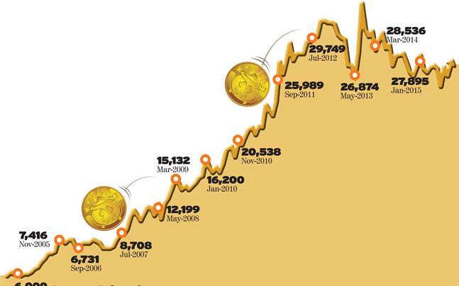 Between 2005 and 2015 gold surged from Rs6,000 to Rs27,000 per 10 gm, at CAGR of 16.23 per cent.