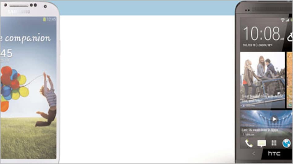 DESIGNSamsung Galaxy S4 (Rs 41,490 for 16 GB variant)The SG4 is not unique in any way and looks very much like its predecessor. It has got a polycarbonate back that is like a flimsy piece of plastic. Though sleek and weightless, it lacks a premium feel. It is 7.9mm thick and weighs 130 grams.HTC One (Rs 42,900 for 32 GB variant)The HTC One is a gorgeous piece of hardware with a full metal unibody with zero gap construction. The curved back gives a comfortable grip. It weighs 143 grams and is 9.3mm thick, but is still comfortable to hold.DISPLAYSamsung Galaxy S4The 5-inch Full HD display offers sharp images and text. But AMOLED screens often show oversaturated colours.HTC OneHTC One's 4.7-inch Full HD screen isn't by any means small. Everything looks sharp and natural.USER INTERFACE Samsung Galaxy S4The latest version of the TouchWiz doesn't change things much. But this user interface is simple and neat.HTC OneHTC Sense now has Blink Feed, a magazine-like interface showing news, Facebook and Twitter updates.PROCESSING POWERSamsung Galaxy S41.6GHz + 1.2GHz quad-core processor, 2GB RAM, Android v4.2.2. The Samsung Galaxy S4 scores marginally well in almost all the benchmark tests we ran. Quadrant 12275; Antutu 27850, 3D Mark 10608; SmartBench 2012 6982.HTC One1.7GHz quad-core processor, 2GB RAM, Android v4.1.2. HTC One scored a little less but you wouldn't feel any difference in performance. Quadrant 12105, Antutu 21738, 3D Mark 10469, Smart Bench 2012 6670SOFTWARE Samsung Galaxy S4Smart Scroll for scrolling the page up and down by tilting, Air Gesture to change gallery images without touching and Air View to show a preview by hovering the finger over the gallery or email give it an edge.HTC OneThe HTC One has an integrated TV guide that lets you to select TV channels, access program guides, adjust audio. But it didn't work with our Tata Sky set-top box. There is the HTC Sense too.CAMERASamsung Galaxy S4The SG4 has got 13MP BSI sensor camera with LED flash that produces good images in perfect lighting. But its performance is a spoiler in lowlight environments with images lacking sharpness.HTC OneHTC has added a unique 4MP sensor to the One. While it produces good images in daylight, it wasn't as impressive as the SG4 results. But talk about low-light and night photography and the HTC One does a good job.BATTERYSamsung Galaxy S42600 mAh battery lasts a day with ease when all the fancy features are turned off.HTC One2300 mAh battery lasts a day with average use, but with heavy use it dies faster.