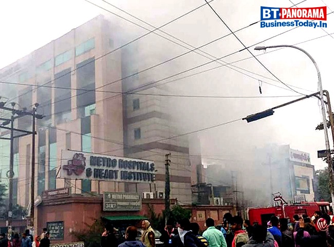 A massive fire broke out in Metro Hospitals and Heart Institute in Noida on Thursday afternoon, trapping several people inside the multi-storeyed building. The hospital is located in Noida's Sector 12 area. About 30-35 patients were rescued and shifted to local hospitals. Staffers tried to help patients out of the building as thick smoke billowed out of the building. All the patients were successfully rescued and moved to the hospital's branch in Sector 11. According to initial reports, a short circuit is suspected to have started the fire.