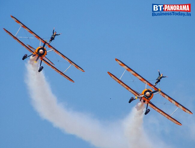 61 "metal birds" hover the skies over the Yelahanka Air Force station. 61 aircraft will show off their features over a period of 4 days