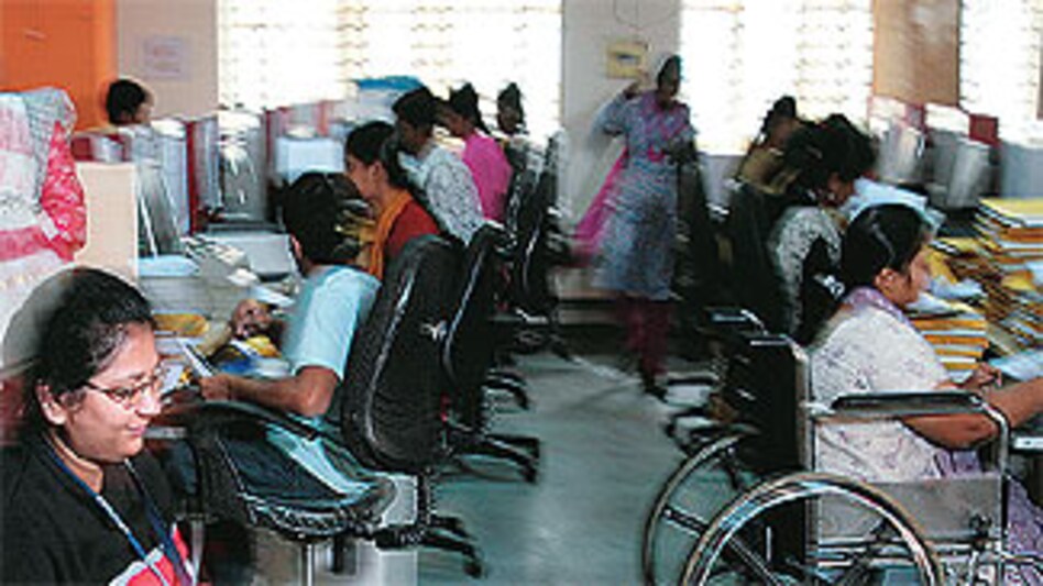 Javaraiah, as he is better known, is not alone: the differently-abled account for 95 per cent of the staff of over 180. "Of the 23 employees who joined us in the first year, 17 are still with us," says D. Ashok Giri, Founder and CEO. Giri and his wife Y.S. Pavithra, the Managing Director, founded the company. Their focus was on hiring differently-abled people. First, regular employers ignore this segment. Second, good talent can be found here to run a for-profit business. Says Giri: "We hire people from different sources. The selection process is divided into three rounds. The first thing we look for is attitude… if a person has an attitude to do something in life, he can achieve anything. Second, we look at skills such as typing speed, and we have a written test with English and computerrelated questions. Finally, there is an interactive session."Giri runs Vindhya e-Infomedia like a regular business, with weekly and monthly performance incentives for the best workers. "The top performers get a cash prize and recognition.'' But does he fire people, like in a normal business? Just one or two since inception, says Giri, and only for behavioural concerns. "We try and help employees improve their performance and skills," says Giri. The twostoreyed office was designed for the differently-abled.Giri says the opportunity given to them cements the emotional bonding with the company. "For more than 90 per cent of our employees, Vindhya is the first workplace... The loyalty factor plays a very important role among them. Also, being with others and helping them to cope and mentoring the new recruits helps," he says. All this has translated into good business. Giri claims it has doubled each year. "From a turnover of Rs 7 lakh in our first year, 2006-2007, we hope to touch Rs 2.5 crore this year," says Giri. Among his major clients are Wipro, MindTree, IndusInd Bank, Ujjivan and Janalakshmi.MindTree has been working with the company since mid-2009. Says Sindhu Subhashini, head of human resources, or Anuka, the Sanskrit word MindTree uses for the post: "It sticks to timelines and delivers with zero error." In the first six months, the company digitised all of MindTree's employee records. Now, it works 15 days a month to handle the digitisation of records of new recruits.Says Abhijit Ray, Director and Co-founder of Unitus Capital, who has known the company for the last 18 months: "Their business model addresses both commercial and social needs and yet is successful with timely delivery and quality. The company also stands out in the way it treats its employees, particularly the rural manpower that it hires and brings into the mainstream."Giri says he would like Vindhya to be a 5,000-people company five years from now, specialising in processing documents for microfinance institutions as well as for banking, financial services and insurance, apart from HRrelated services. "We are sufficiently funded," he says.