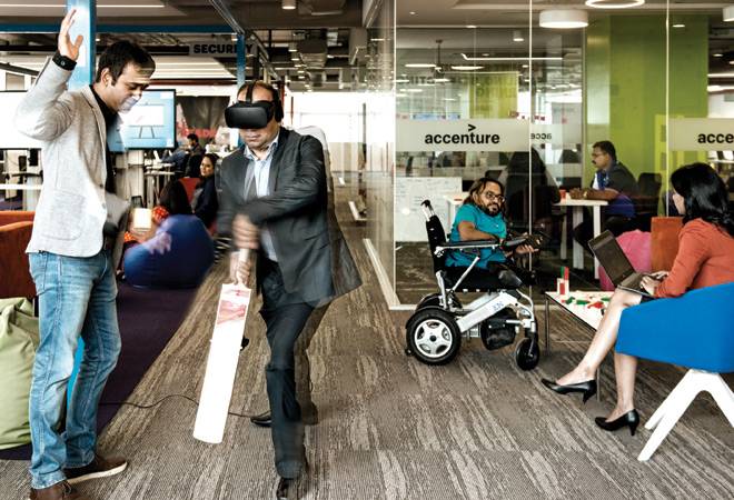 His travel schedules could compare with some of the most elite business travellers. Last year, Saswat Kumar Swain, 36, Associate Manager at Accenture, Bengaluru, spent six months in Sweden and, in the remaining part of the year, found himself in a different Indian city every two months. That the technology architect is wheel chair-bound and suffers from 'osteogenesis imperfecta,' or brittle bone disease, did not seem to matter as he went about his work - training next-generation architects and meeting clients. "The culture of this organisation is the biggest attraction. The company is spread across geographies but works on similar values whose centrepiece is respect for people. People take pride in what they do here," he says with a smile as he lets his long tuft of rockstar hair sway before taking off in his motorised wheelchair at Accenture's latest physical asset, the 4,40,000 square feet innovation hub where 4,000 people work that Accenture India opened at Bellandur in Bengaluru in July 2017. He should know, for he has spent a dozen-odd years with the company.