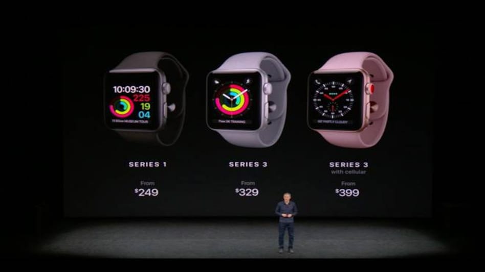 Apple is launching the Apple Watch Series 3 in a non-cellular and non-cellular variants starting $329 for non cellular, $399 for with cellular. The Apple Watch Series 2 will retail at $249. Going on sale starting September 22, India is not listed in the first set of counties yet.
