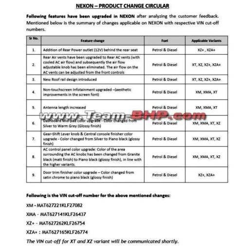 All variants of Tata Nexon in petrol and diesel options, except the base XE trim, have received upgrades.Tata Motors has updated its compact SUV Nexon with a host of features, according to a leaked document. The feature upgrade for Tata Nexon was carried out based on customer feedback. Apart from the base XE variant, all other variants of the Tata Nexon in petrol and diesel options have received new features in the latest round of upgrades.
