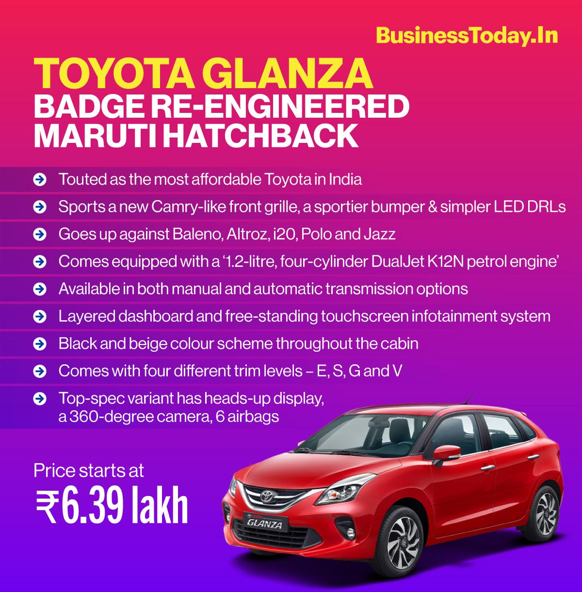 Toyota Kirloskar Motor, which is a joint venture between Japanese automotive Toyota Motor Corporation and Indian conglomerate Kirloskar Group, had unveiled the re-badged Maruti hatchback just a few weeks after the Maruti Suzuki launched its Baleno.