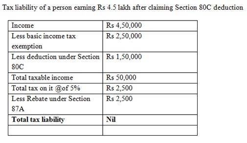Tax liability of a person earning Rs 4.5 lakh after claiming Section 80C deduction