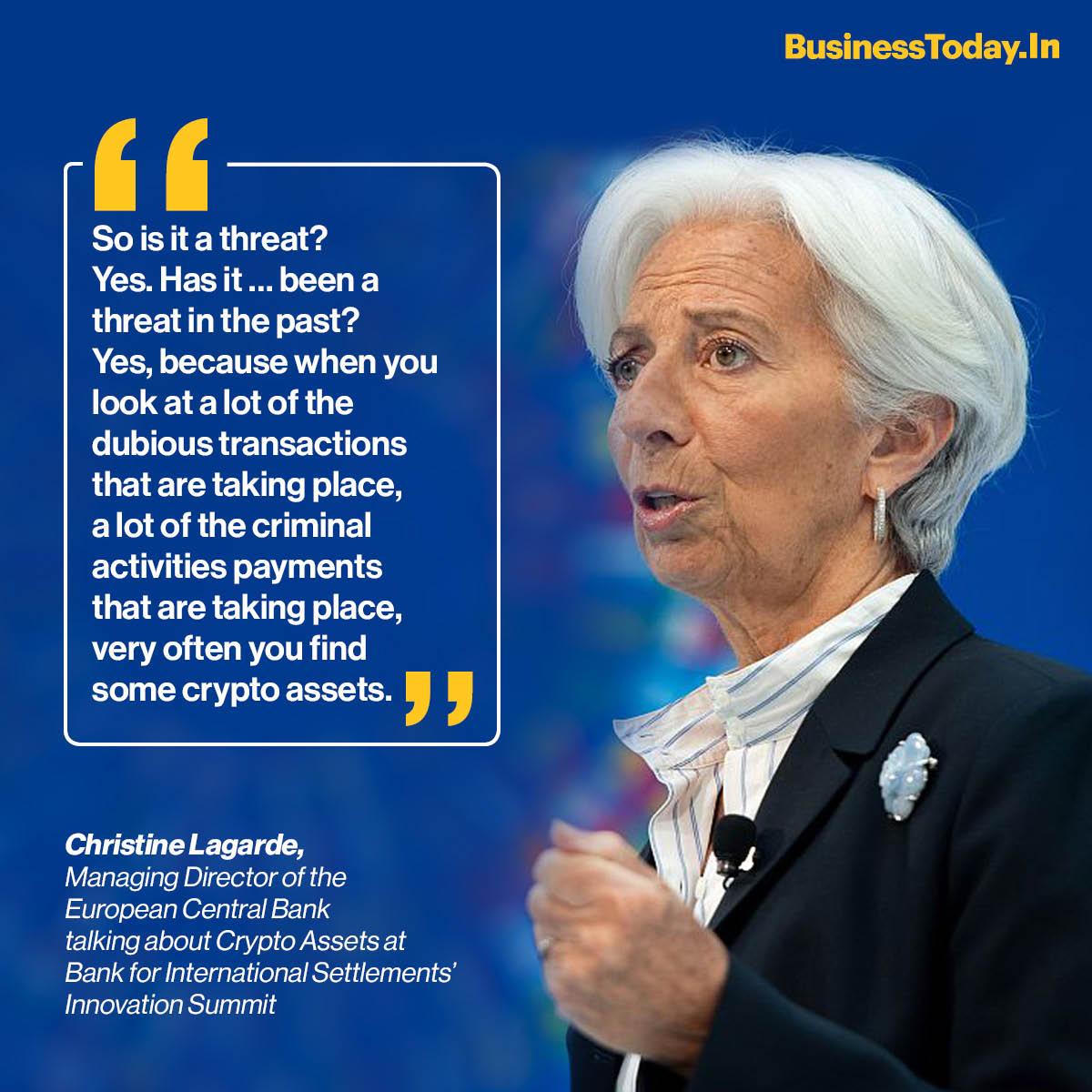Christine Lagarde, Managing Director of European Central Bank (ECB) said cryptocurrencies are a cause of concern and said that they “remain a threat”.
