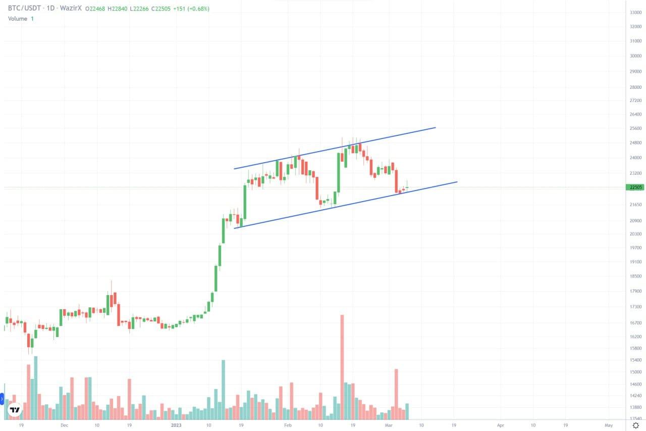 Bitcoin (BTC) closed in red for the last couple of weeks after a 10 per cent jump in the mid-week of Feb, 2023. However, BTC appeared to show promise as the trends continued its upward momentum. The daily chart for BTC is traversing within an ascending channel pattern making higher lows.