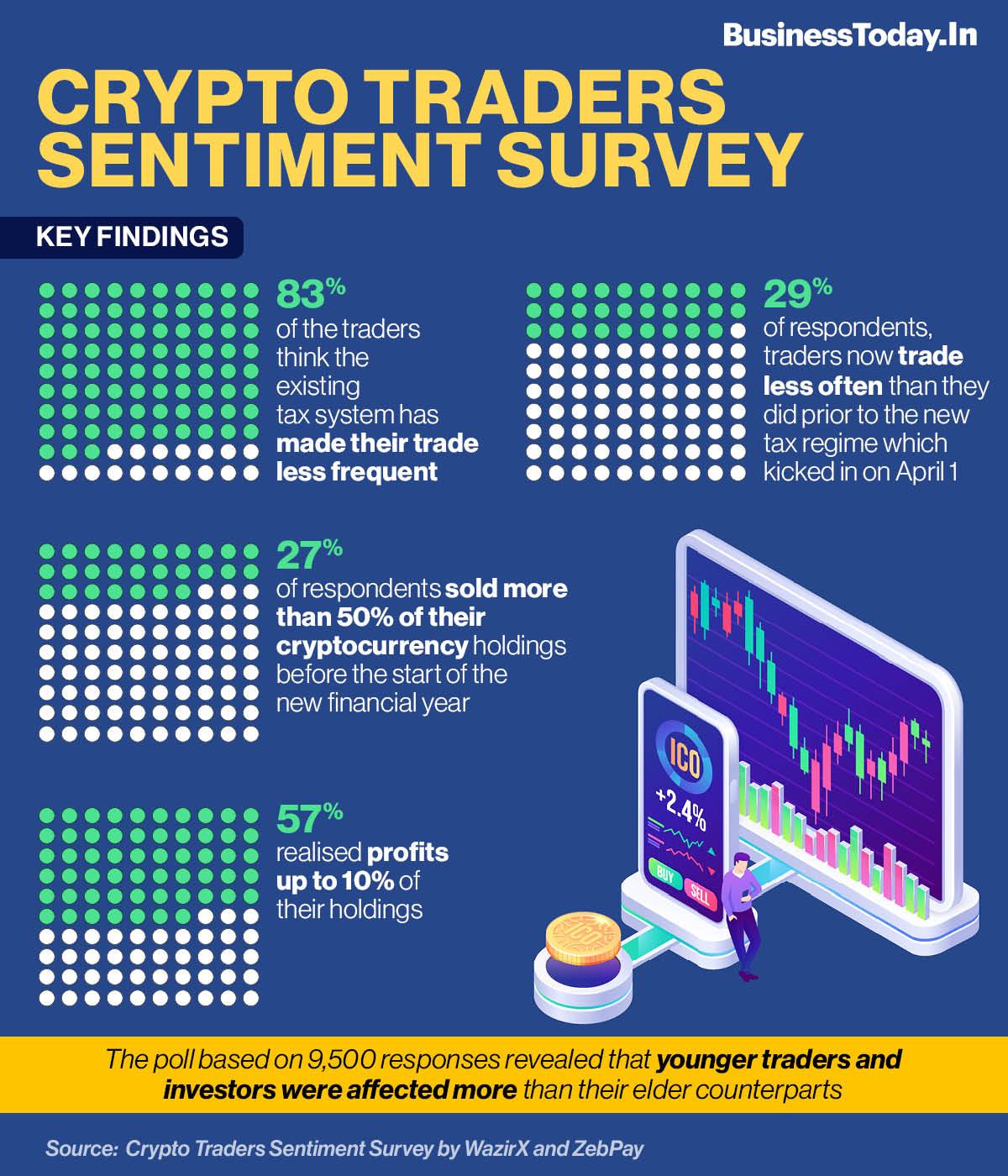 Trading frequency down; tax laws impact young crypto traders: Traders Sentiment Survey The recently introduced tax laws have impacted not just KYC compliant crypto exchanges operating in India but also crypto traders who use these exchanges to invest in cryptocurrencies.